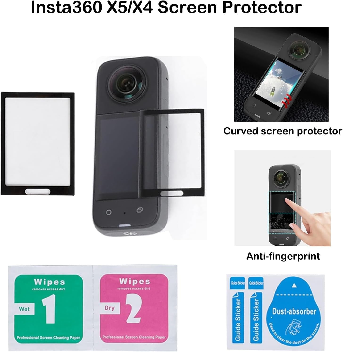 - To protect your gear, the kit also includes a screen protector designed for Insta360 X5/X4. With 99.99% high transparency, it keeps your display crystal clear while protecting against scratches and dust.