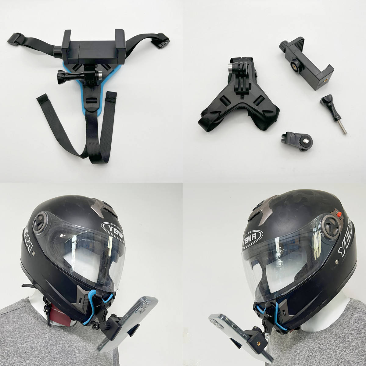 Helmet Chin Strap Mount Kit with Phone Holder – Compatible with GoPro, Insta360 & DJI