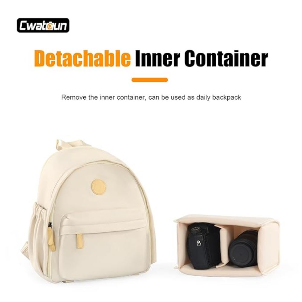 Cwatcun Small Camera Backpack with 1 Camera Body, 1 lens & Tripod Strap | White