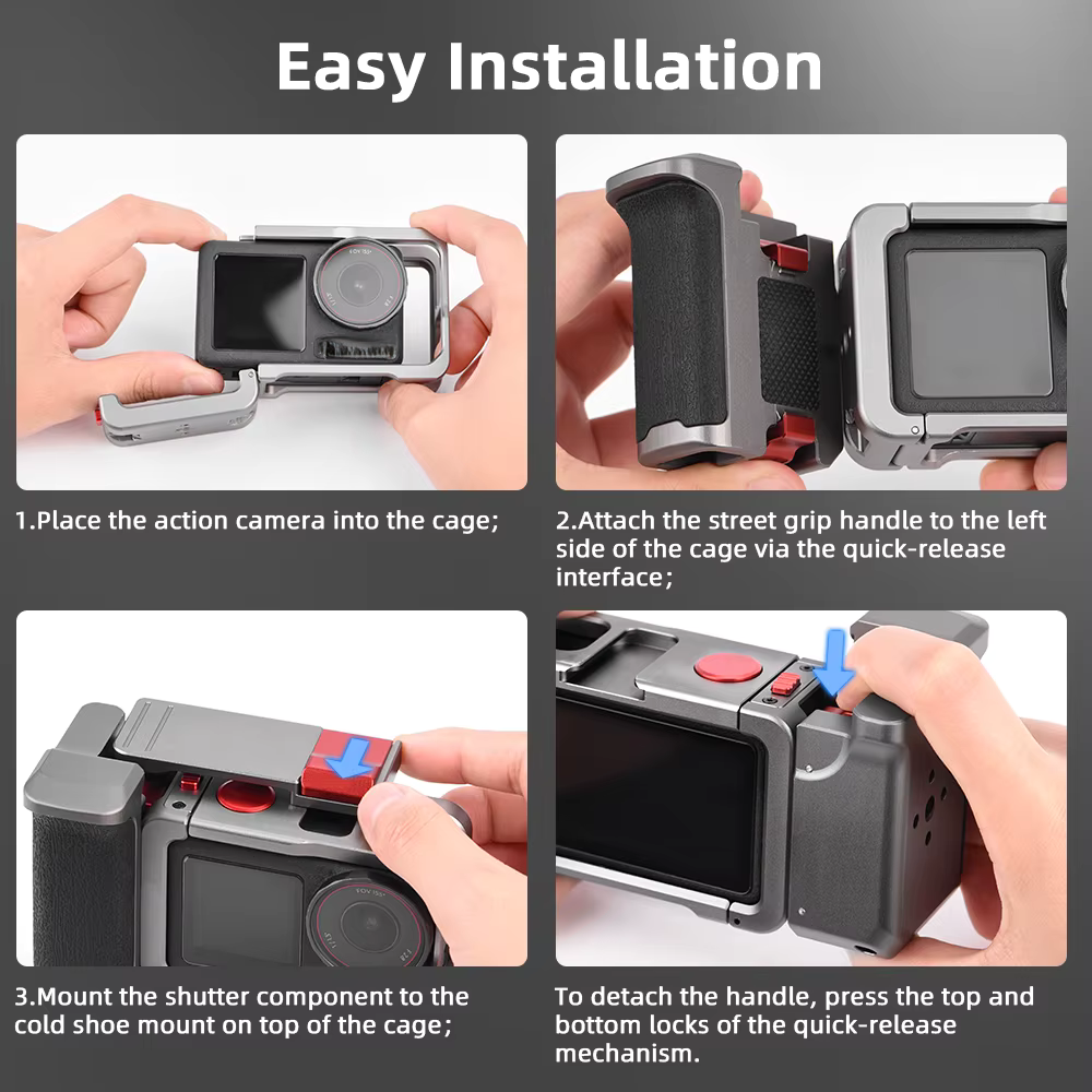 With its magnetic quick-release mount, you can instantly attach or detach your camera, switching between handheld shots and mounted setups without wasting time. The ergonomic anti-slip grip ensures a secure, comfortable hold, letting you record longer sessions without hand strain — perfect for vlogging, travel, or street photography.